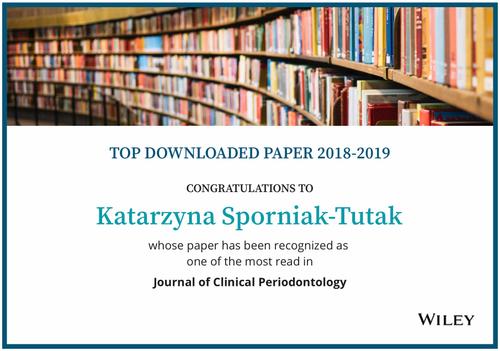 Randomized controlled multicentre study comparing short dental implants (6 mm) versus longer dental implants (11-15 mm) in combination with sinus floor elevation procedures. Part 1: demographics and patient-reported outcomes at 1 year of loading.Randomized controlled multicenter study comparing short dental implants (6 mm) versus longer dental implants (11-15 mm) in combination with sinus floor elevation procedures. Part 2: clinical and radiographic outcomes at 1 year of loading.Short dental implants (6 mm) versus long dental implants (11-15 mm) in combination with sinus floor elevation procedures: 3-year results from a multicentre, randomized, controlled clinical trial.Randomized controlled multicentre study comparing short dental implants (6 mm) versus longer dental implants (11-15 mm) in combination with sinus floor elevation procedures: 5-Year data.Działalność naukowa zespołu Aesthetic Dent w dziedzinie implantologii i periodontologi została doceniona przez lekarzy na całym świecie.